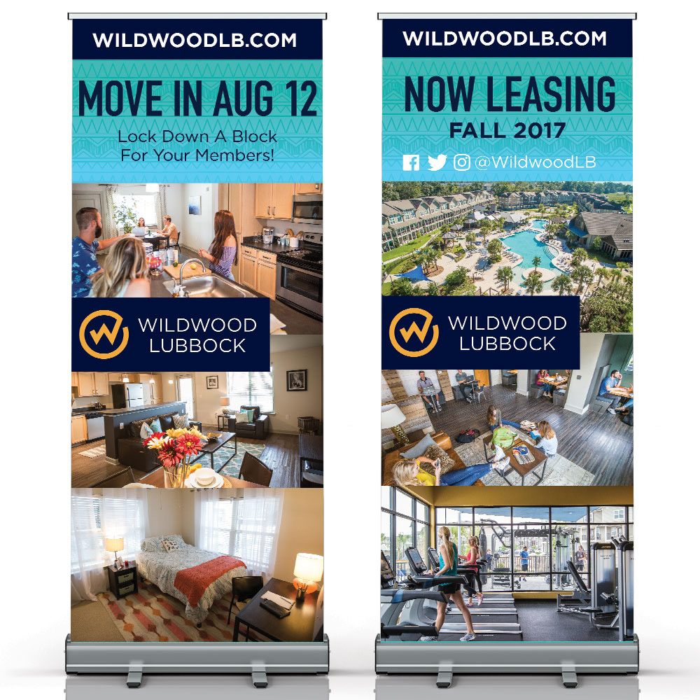 Portable banners for use at housing fairs and presentations to Greek organizations.