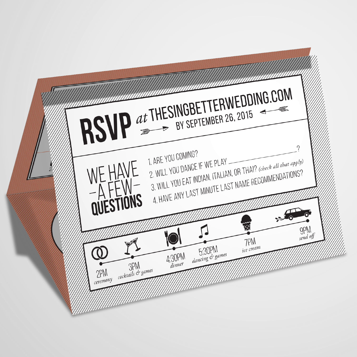 Images were sourced from public domain collections. A color scheme, design direction, and monogram for the couple were created. The borders and names of the invitation, the border of the details card, the bottom design of the RSVP postcard, and the thank you cards were letterpressed on a Vandercook SP20 in editions of 150. As the wedding date was not set at the time of printing, the relevant details were added later via inkjet printer. The coaster was screen printed while the Save the Date postcards and magnets were inkjet printed.